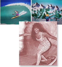 Wave and Surf Action Simulator Guests stand on our surfboard and move their bodies, which in turn controls the surfer they see on the screen. Comes with giant wave backdrop and contest that a surfer dude runs. "Hang 10" While surfing, participants will have thier photo taken in the curl of the wave... unbelivable (includes up to 130 photos). Contact Jerry Laskin for more info: p:(516) 944.0458 e: info@jerrylaskin.com |